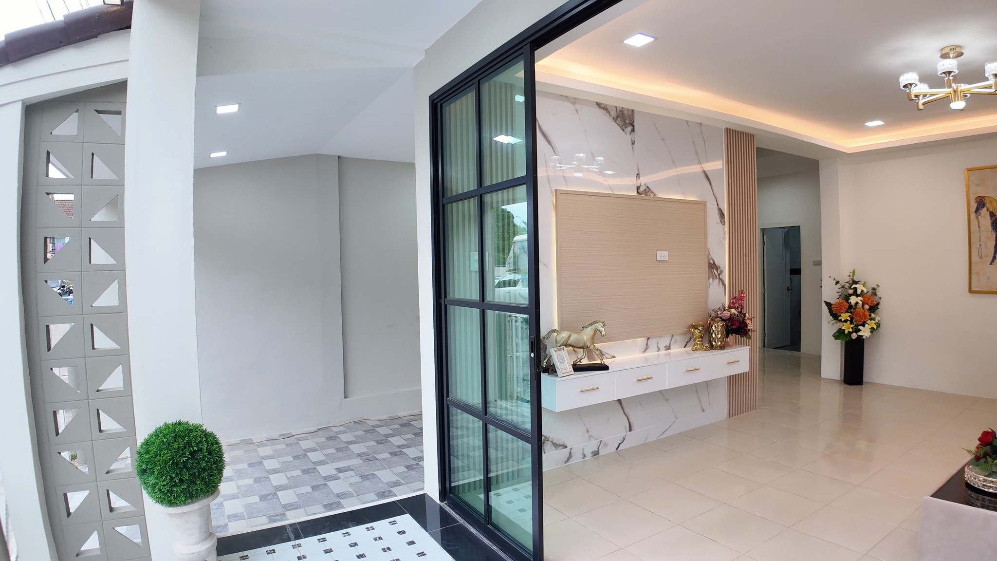 🔹 ผนังทีวีบิ้วอิน